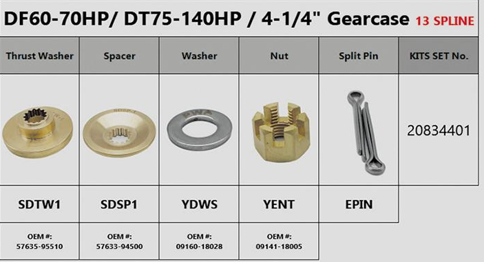 SUZUKI DF60-DF70-DT60-DT140-JOHNSON-EVINRUDE 60HP- 70HP 4T PROPELLER KIT Replaces: 5030976
